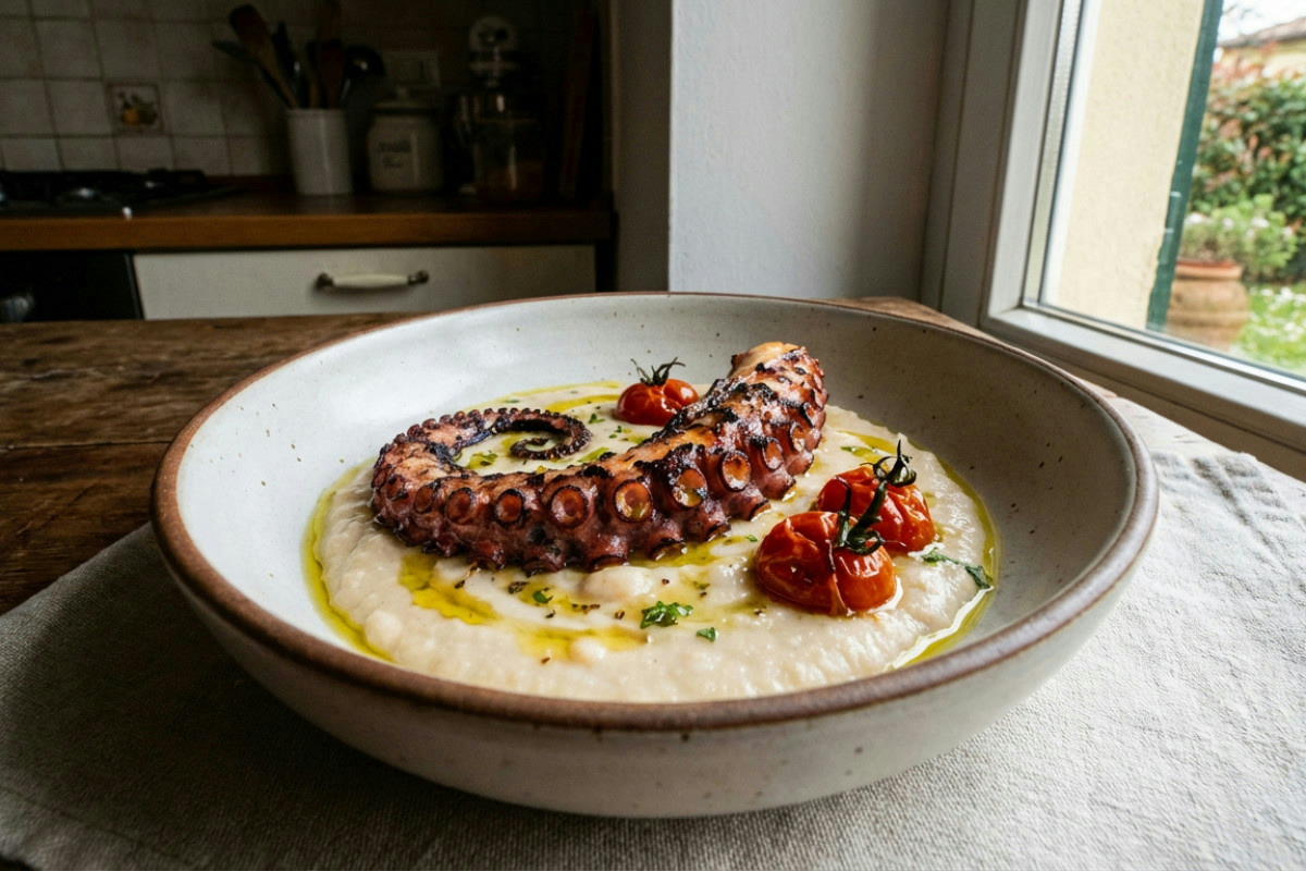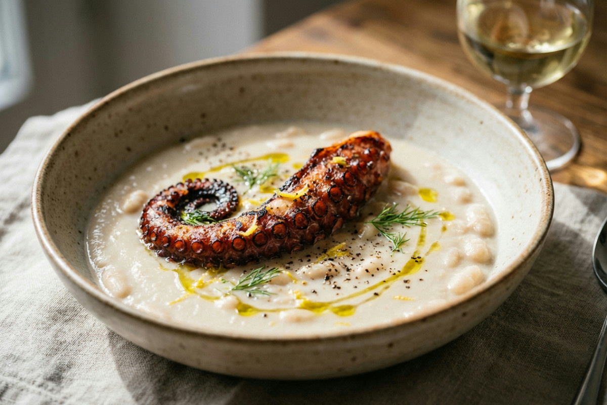 Polpo e vellutata di cannellini: un piatto che unisce mare e terra con un tocco gourmet